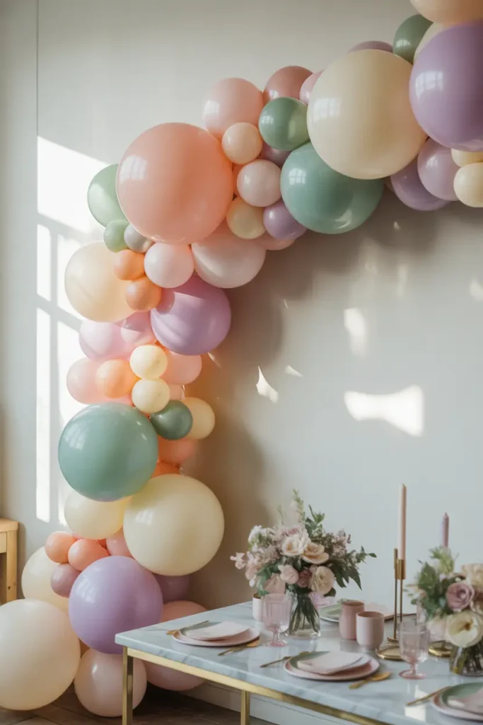 You can attach the balloons to a simple string or tape and place the garland behind the cake table or along a wall. This instantly creates a party focal point and makes photos look more festive.