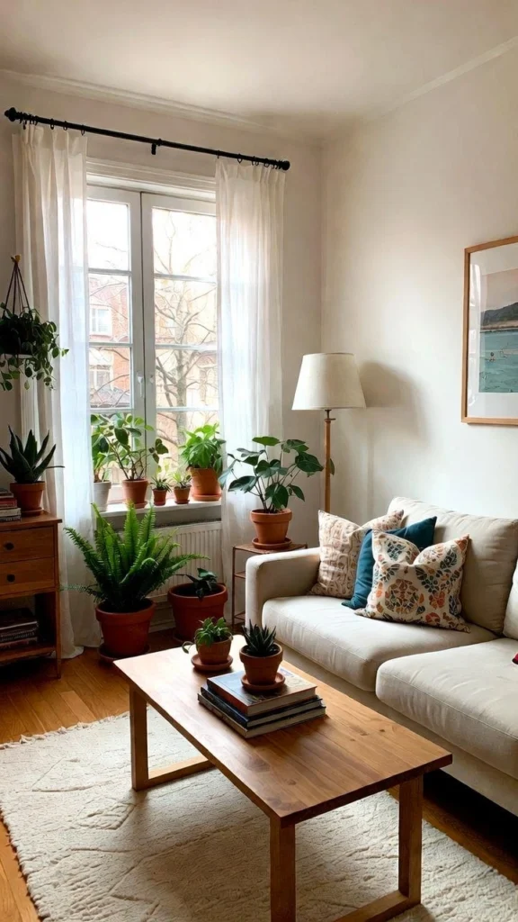 Plants add life and freshness without costing much. Small plants or low-maintenance greenery work perfectly for apartments.