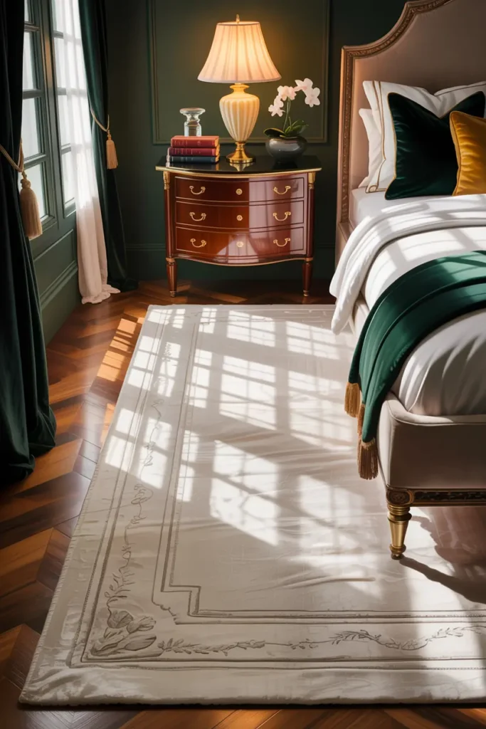 Rugs add texture without clutter. They make the bedroom feel cozy, elegant, and well-designed.