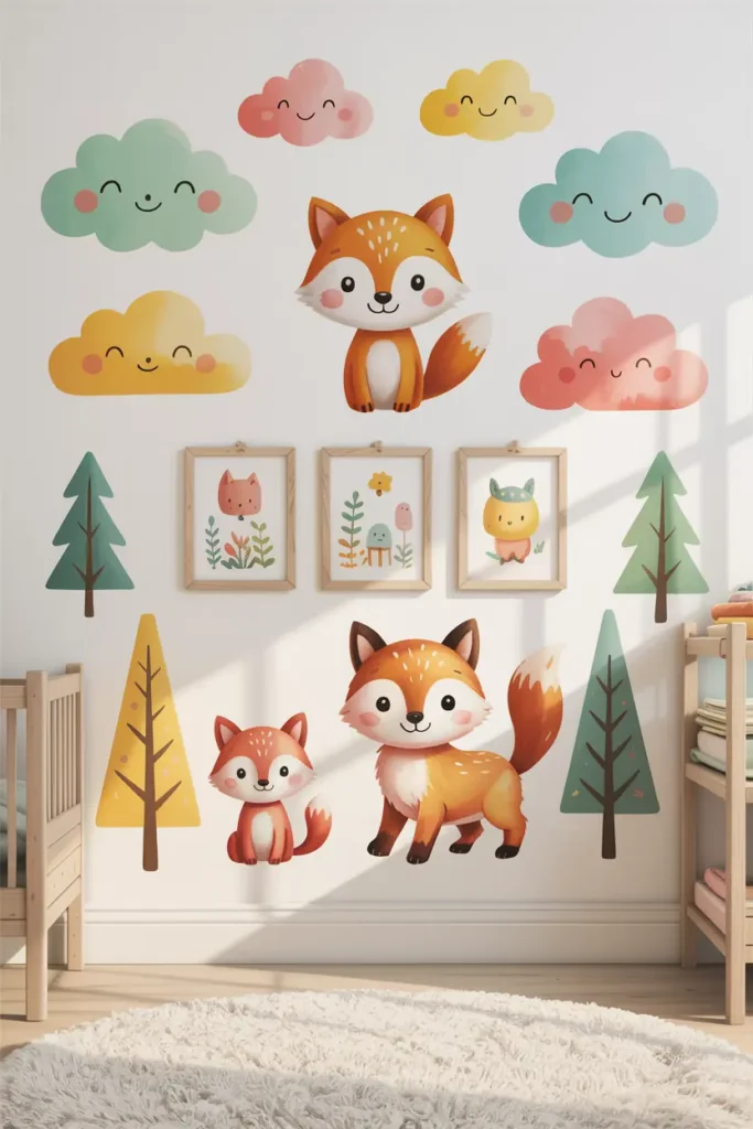 Wall decals, stickers, or framed illustrations add character without permanent changes. They’re perfect for growing kids whose interests change often.