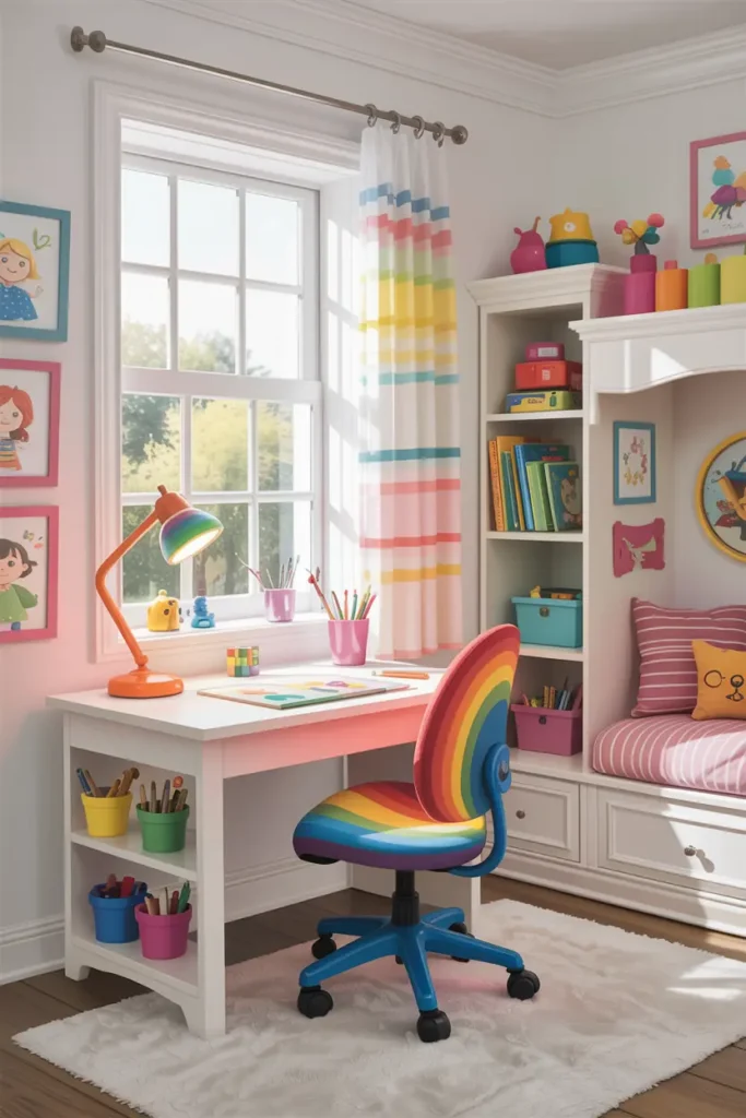 A small desk or activity table gives kids their own space for drawing, homework, or crafts.