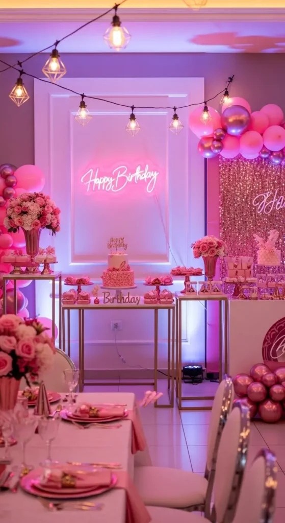 LED or neon signs with the birthday person’s name give a trendy 2026 vibe and look amazing in evening celebrations.