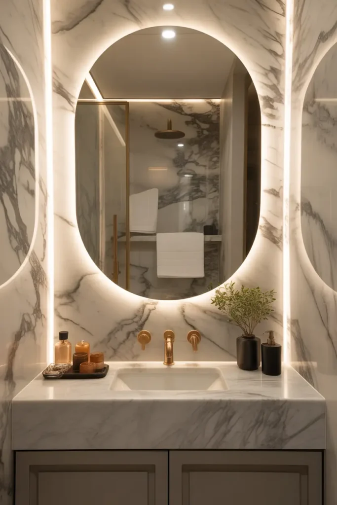 In small spaces, less is often more. Keeping decor minimal allows each element to stand out and prevents the room from feeling cluttered. A clean counter, a simple plant, or a single decorative item can be enough to create a stylish look. This approach makes the bathroom feel more organized and expensive.