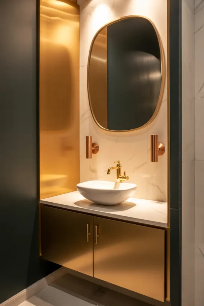 6. Add Metallic Accents to Enhance the Overall Half Bathroom Decor
