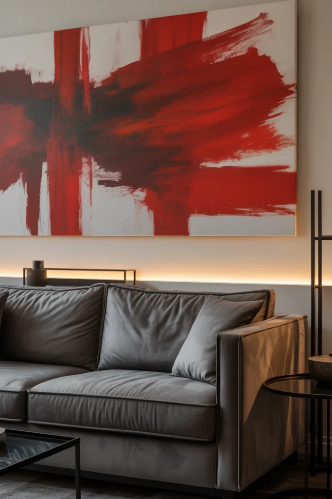 If you don’t want to use too much red in furniture, artwork is a great alternative. A painting or print with red tones can act as a focal point without overwhelming the room.