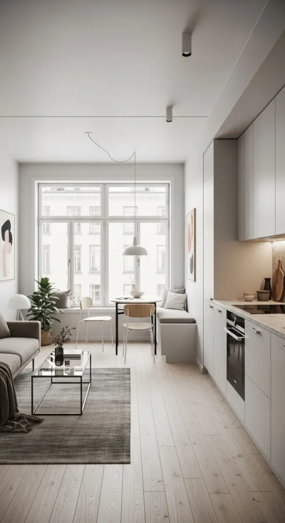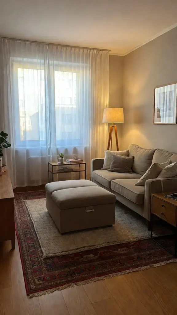 Neutral colors like white, beige, or soft grey instantly make an apartment look clean and spacious. They also allow you to change décor elements easily over time.