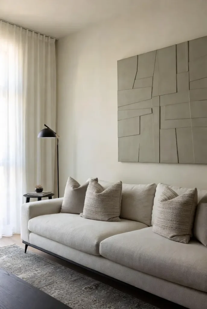 Most contemporary interiors start with neutral tones such as beige, soft white, taupe, or warm grey. These colors create a calm background that allows furniture and décor pieces to stand out naturally.