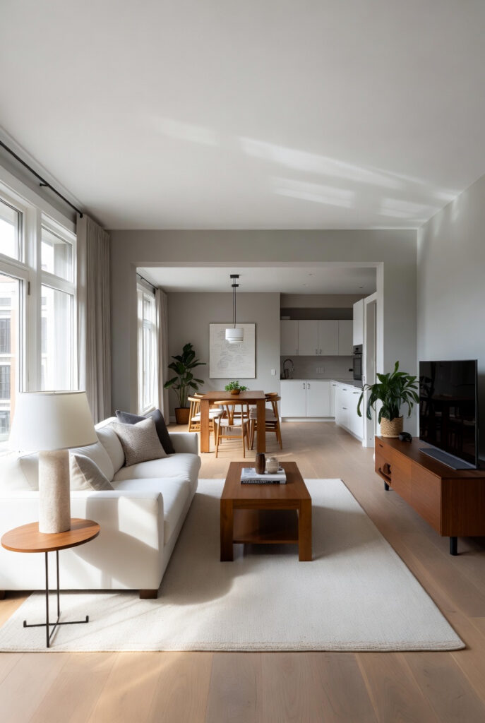 Avoid overcrowding furniture. Leaving breathing space between pieces makes the room feel larger and more modern.