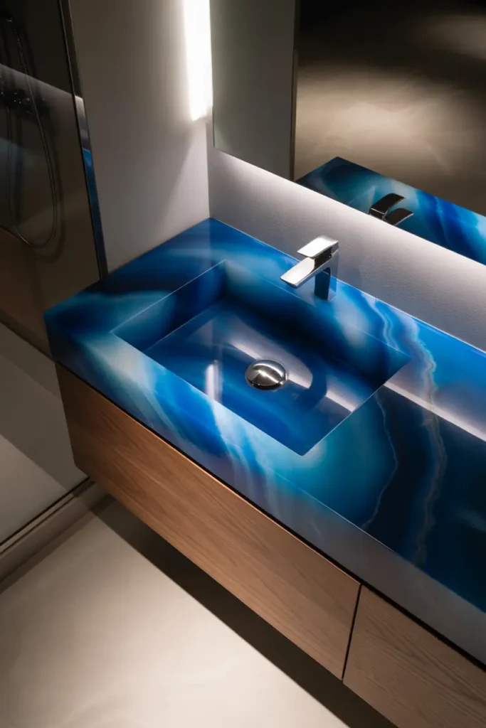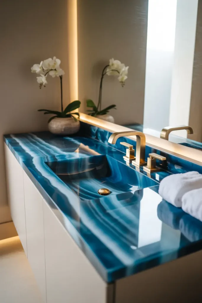 💎 Idea 2: Blue Onyx Vanity Countertop