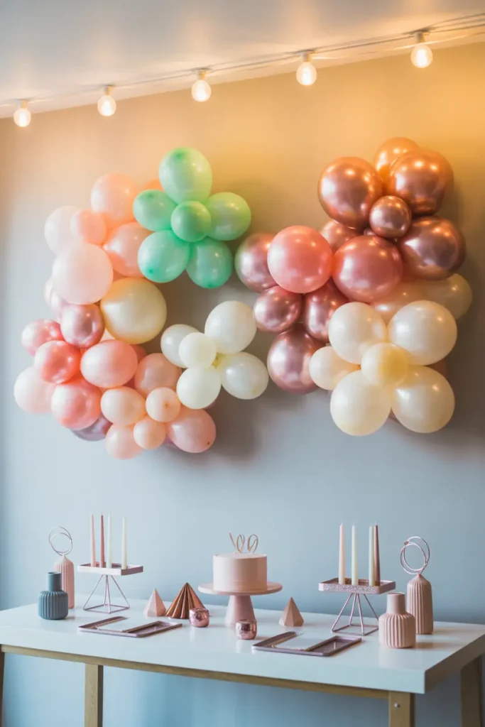Balloons are one of the most classic and versatile birthday decorations. Instead of scattering them around the room, create a full balloon wall behind the cake table or seating area.