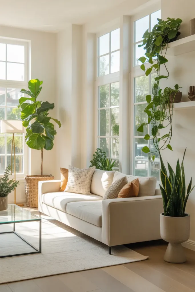 Indoor plants are one of the simplest ways to refresh a living room. Plants add natural beauty, color, and texture to the space while making the environment feel more relaxed and welcoming.