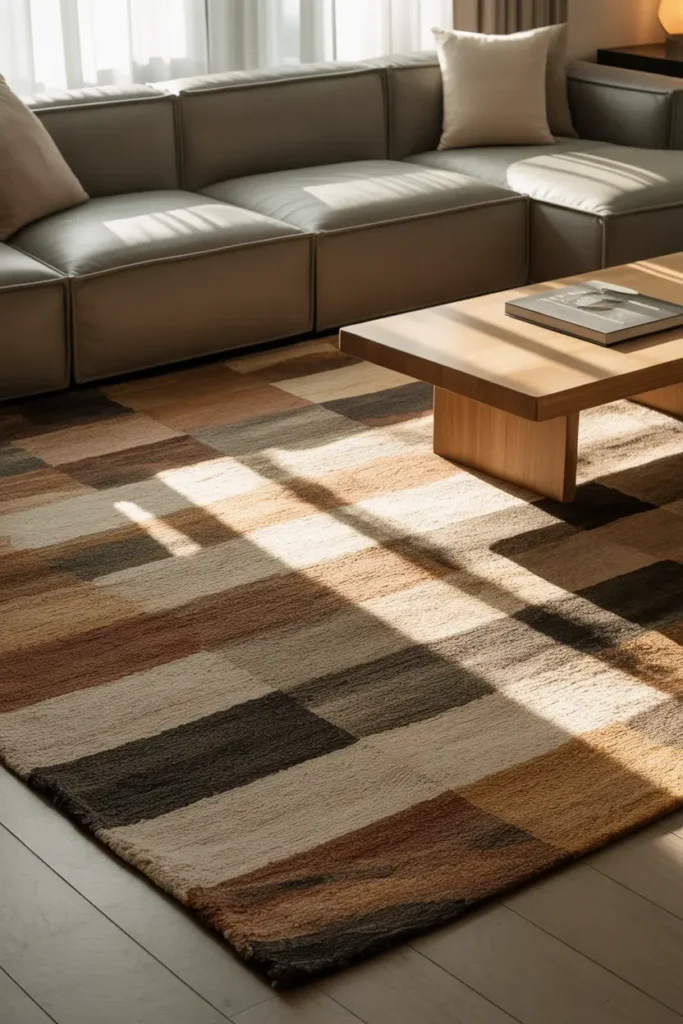 A well-chosen rug can anchor the entire living room design. Rugs help define the seating area while adding warmth and texture to the room.