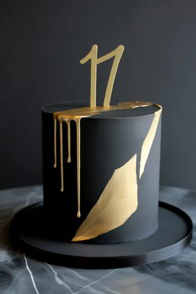 Minimalist cakes are extremely popular for modern celebrations. A black cake with subtle gold accents creates a luxurious and masculine design that feels elegant without being flashy.