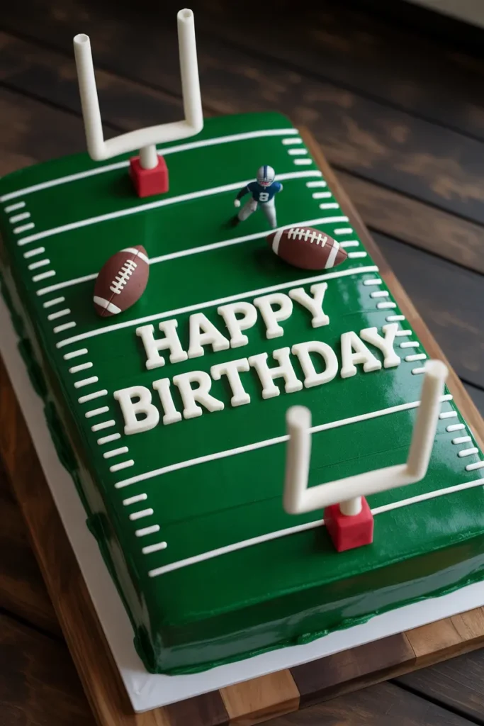 Sports cakes often feature edible logos, jerseys, or field designs.