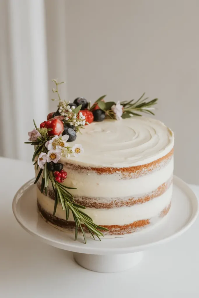 Rustic cakes focus on natural textures and simple decorations. A semi-naked cake with fresh fruit or herbs can look both masculine and elegant.