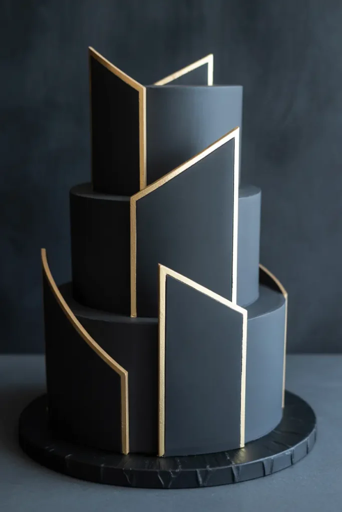 Geometric patterns are a growing trend in cake design. Clean lines, angular decorations, and metallic details create a bold and contemporary appearance.