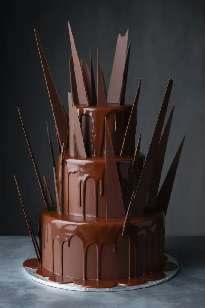 For a dramatic celebration, a chocolate explosion cake can be unforgettable. Chocolate shards, candies, and dripping ganache create an exciting design that looks almost like a chocolate waterfall.