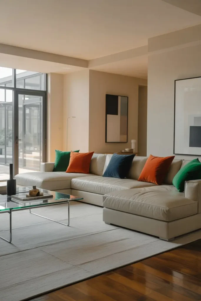 Use accent colors through cushions, artwork, or decorative objects rather than large furniture pieces to keep flexibility.