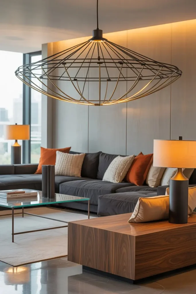 Lighting is no longer just functional — it’s decorative. Sculptural pendant lights, modern chandeliers, or artistic floor lamps act as focal points.