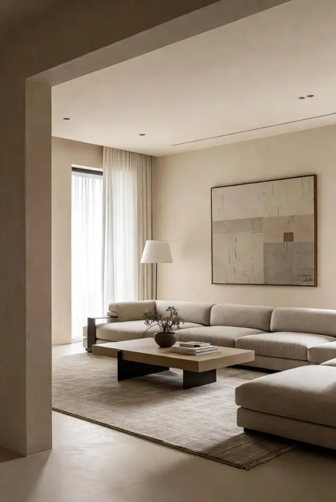 Most contemporary living rooms begin with a neutral base. Shades like warm beige, soft white, taupe, or light grey create a peaceful background that allows furniture and décor to stand out naturally.