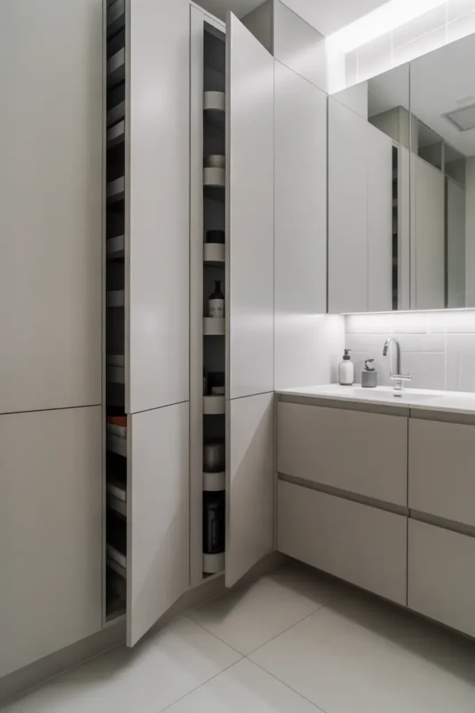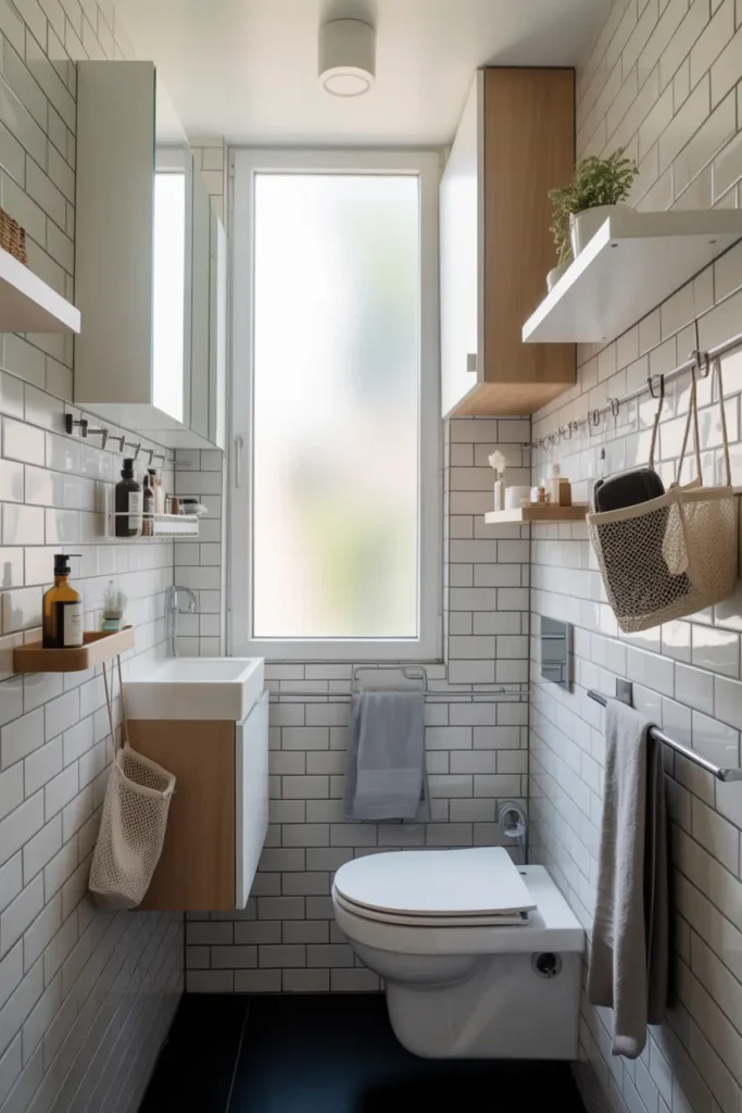 Most people ignore vertical space, but adding wall shelves, hanging organizers, or hooks can completely change how your bathroom works. Once items are off the floor, everything starts to feel more open and breathable.