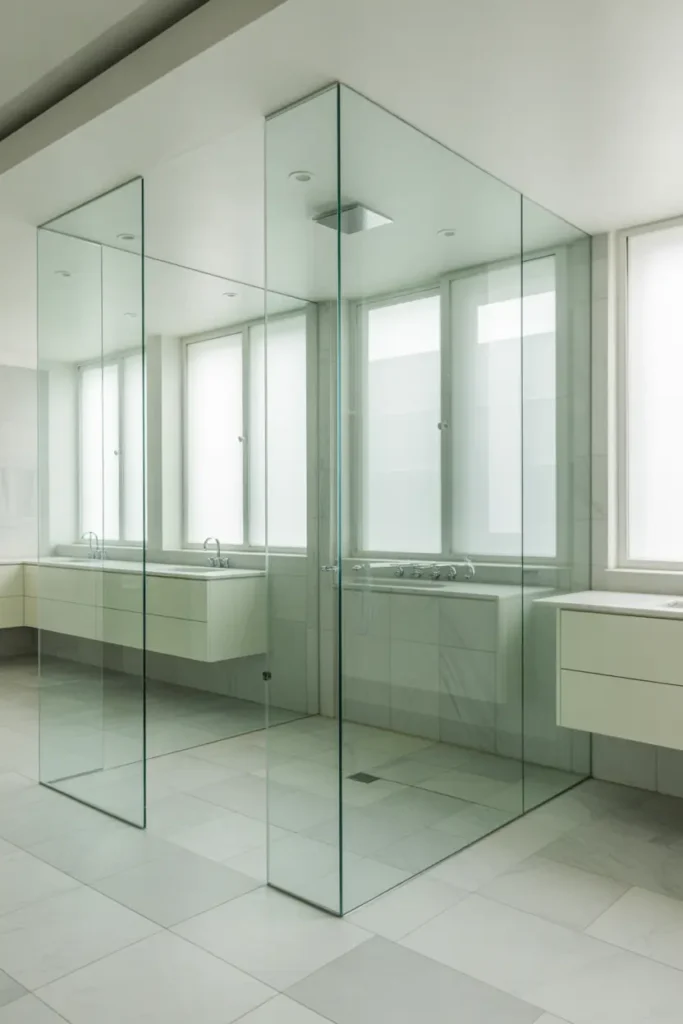 If your bathroom feels tight, replacing heavy partitions with glass can make a huge difference.