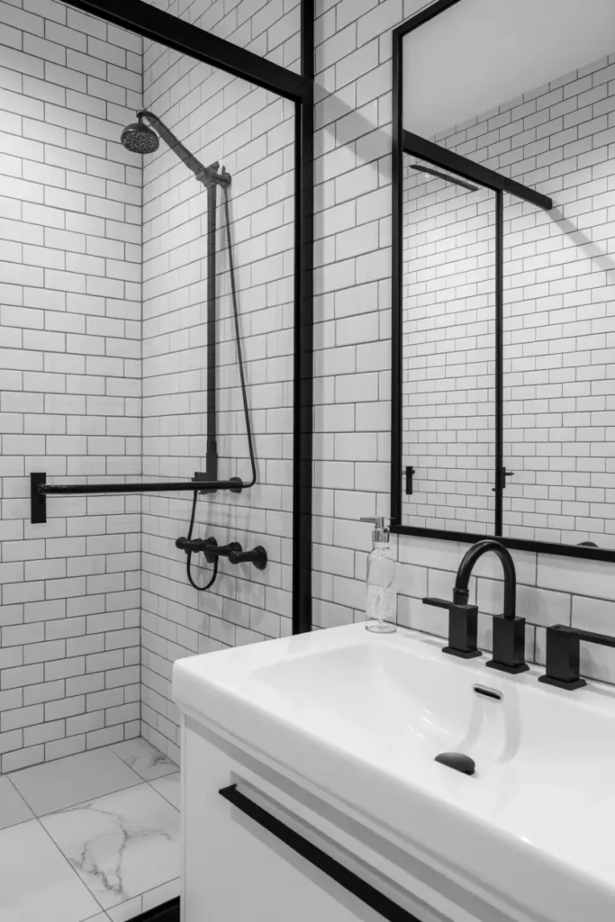 There’s a reason this combo is trending everywhere. Matte black fixtures paired with white surfaces create a strong but balanced contrast.