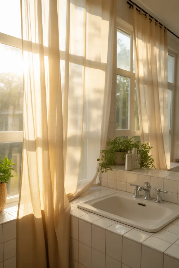 Switching to sheer curtains allows sunlight to enter while maintaining privacy, making your bathroom feel brighter and fresher.