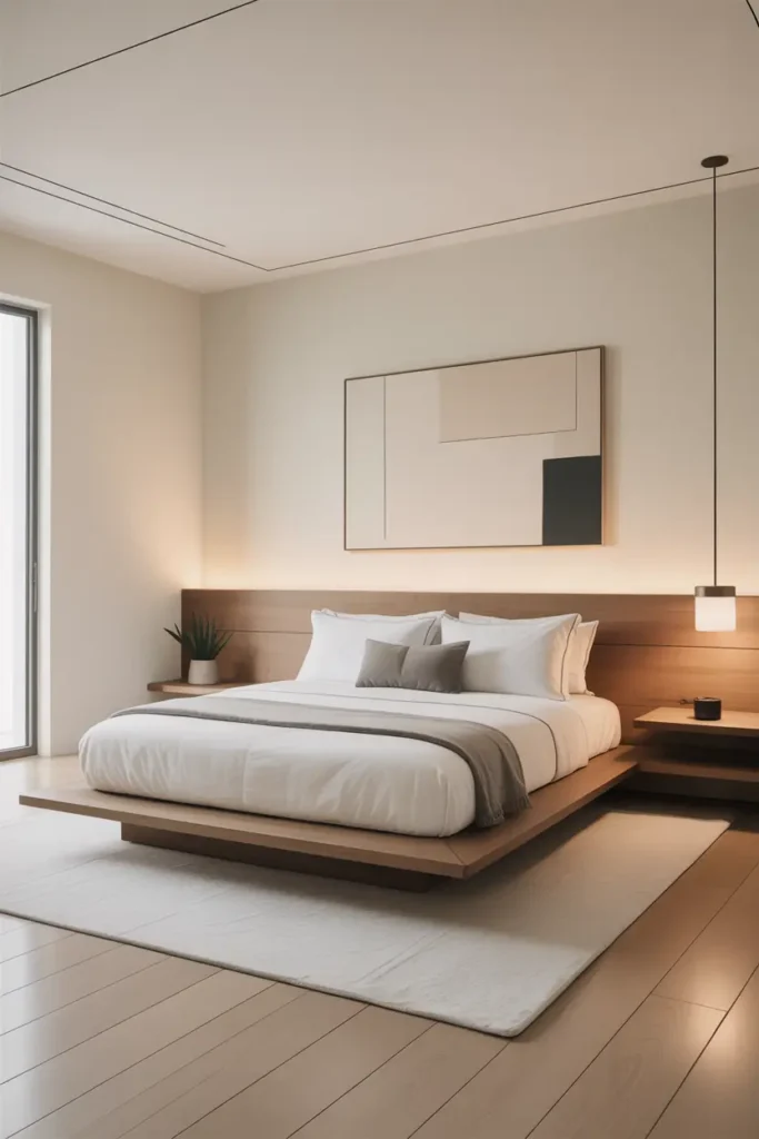 Keeping wall décor minimal allows the room to breathe visually. It makes the bedroom feel organized and peaceful. This approach adds beauty while maintaining the modern, cozy atmosphere you want to achieve.
