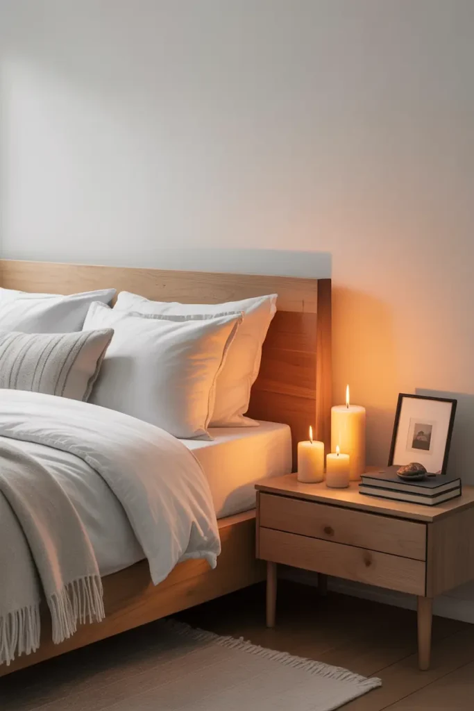 Personal touches make a bedroom feel warm and meaningful. A candle, a favorite book, or a framed photo adds emotional comfort without clutter. These details remind you that the space belongs to you. Keeping them minimal maintains the modern and clean look.