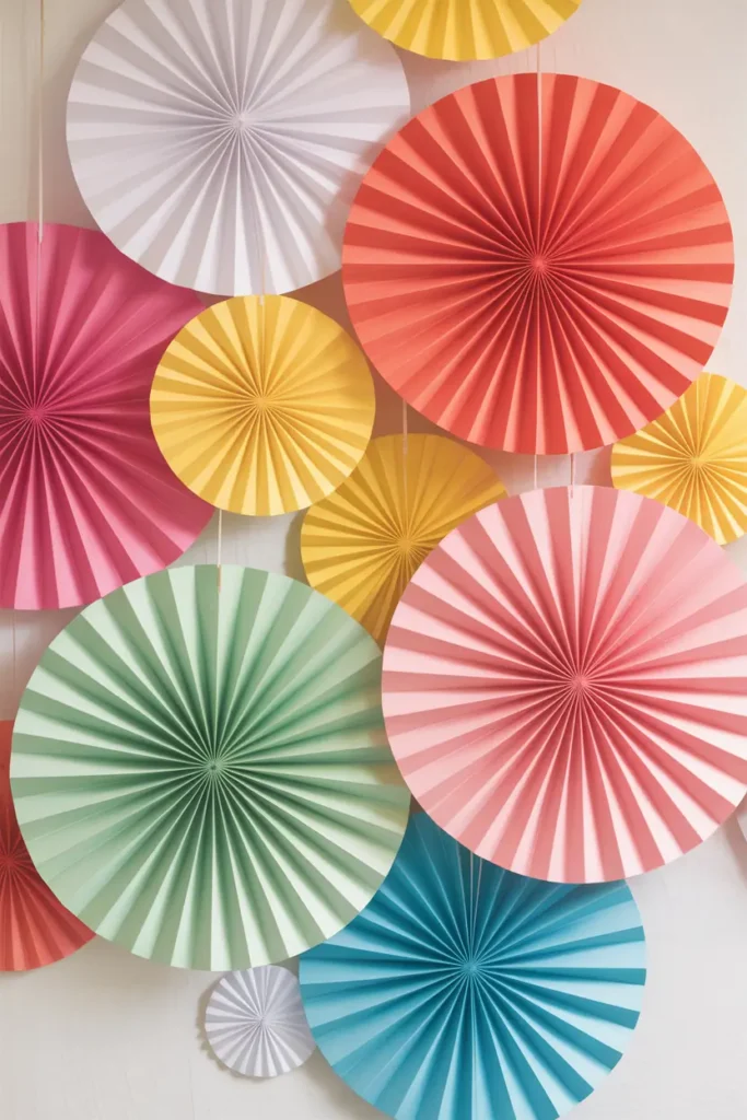 This decoration fills empty wall space beautifully. It adds color, movement, and fun without making the room feel crowded. Paper fans are perfect for home parties because they are simple, cute, and budget-friendly.