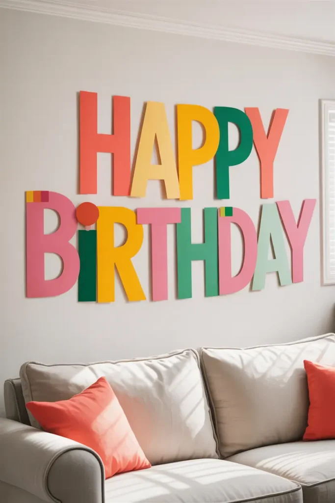 Writing the birthday person’s name with paper letters adds a personal touch to your home party. Cut letters from colored paper and stick them on the wall above the cake or balloons. This simple detail makes the celebration feel special and thoughtful.