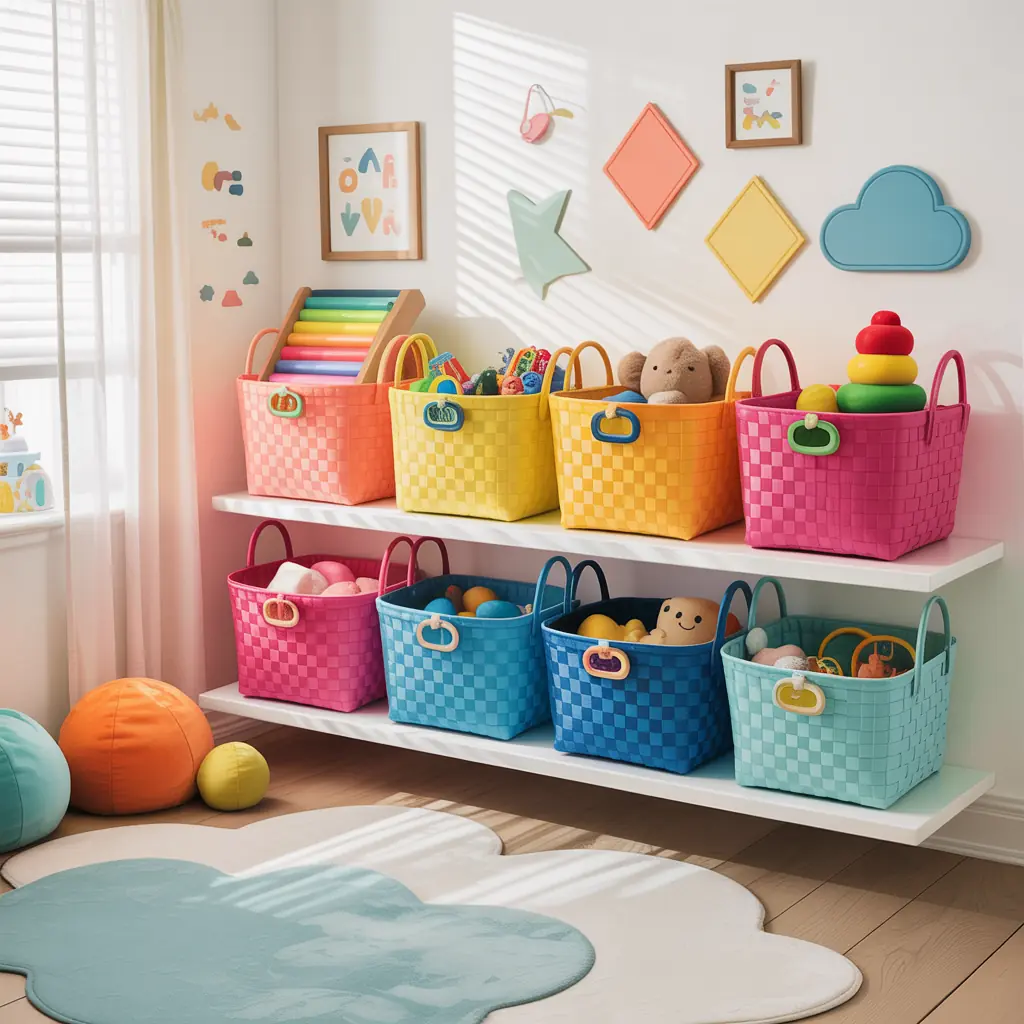 You can find affordable baskets in local markets or online stores. Choose bright or soft colors depending on your theme. This idea keeps the room clean, organized, and visually cheerful on a small budget.