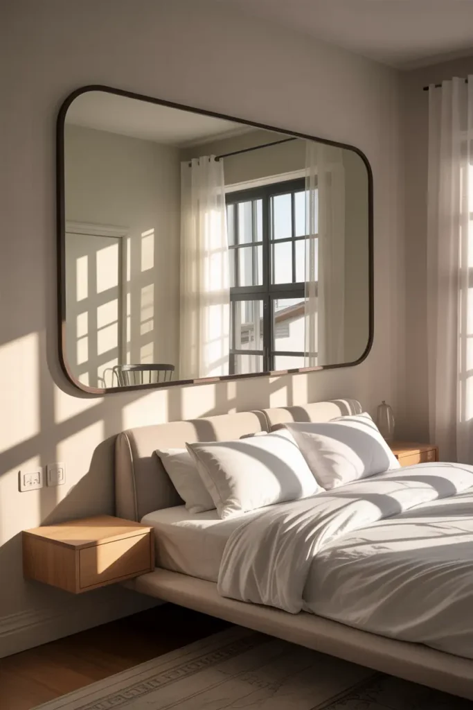 Mirrors are one of the best tricks for small rooms. They reflect light and visually double the space. A single large mirror can make a narrow room feel wide and open.