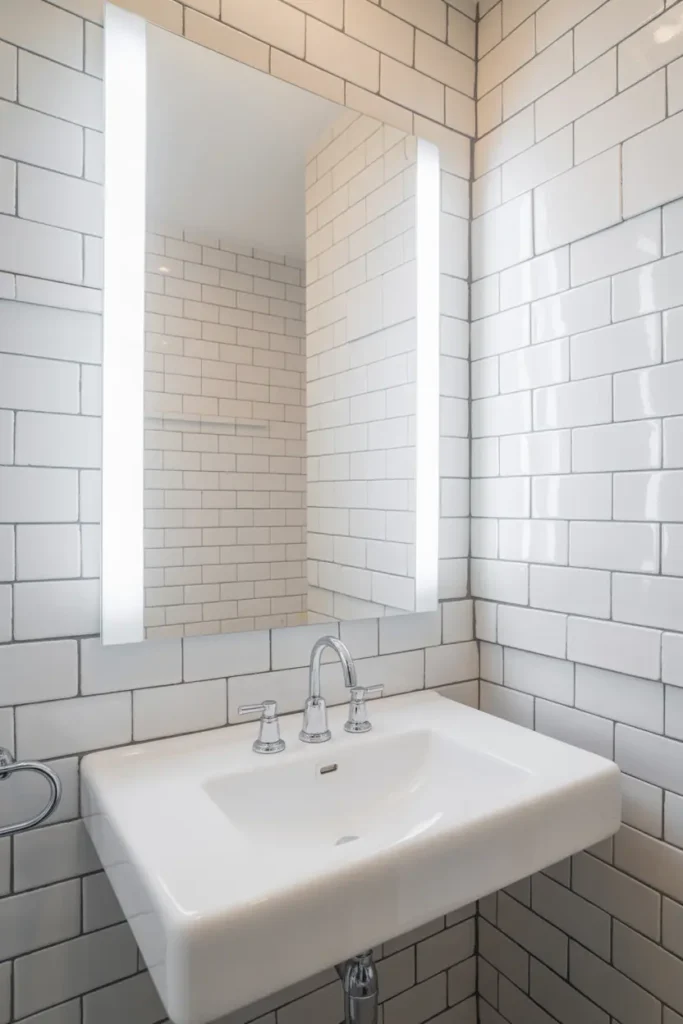 Mirrors are one of the most effective tricks for making a bathroom feel bigger. A large mirror reflects both natural and artificial light, creating the illusion of depth.