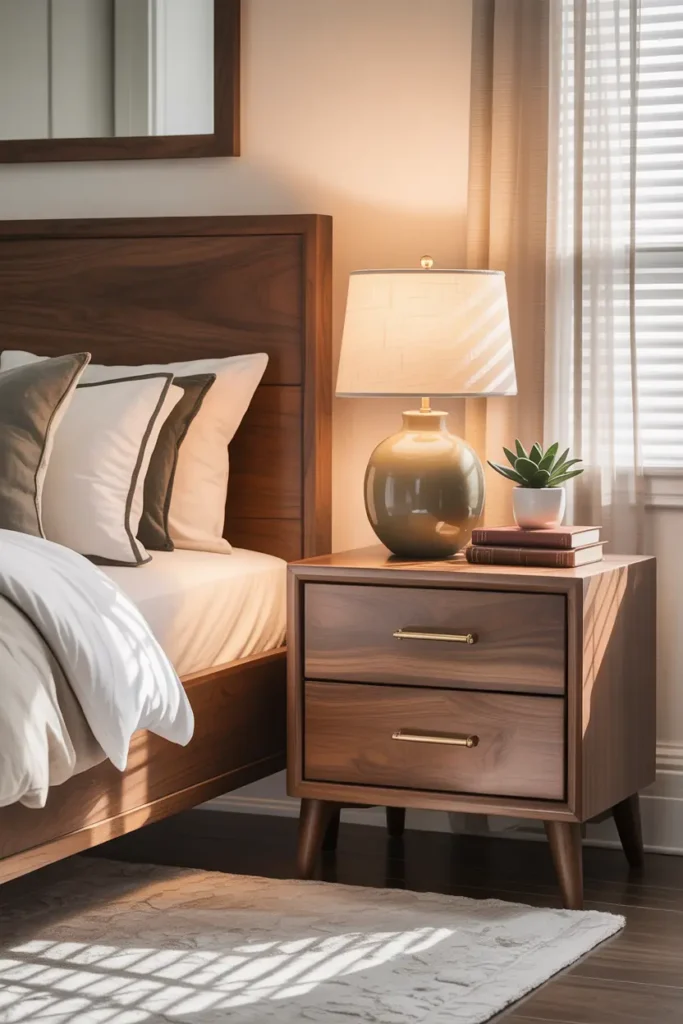 Nightstands play a key role in bedroom proportions. They should be similar in height to the mattress for both comfort and visual harmony. For larger beds, wider nightstands help balance the bed’s size. Smaller beds look best with slim or floating nightstands that keep the space feeling light and uncluttered.