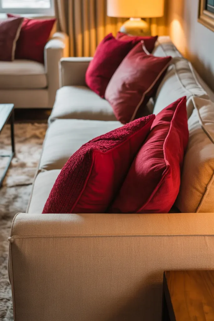 Add Soft Red Cushions to Bring Warmth Without Overpowering the Room