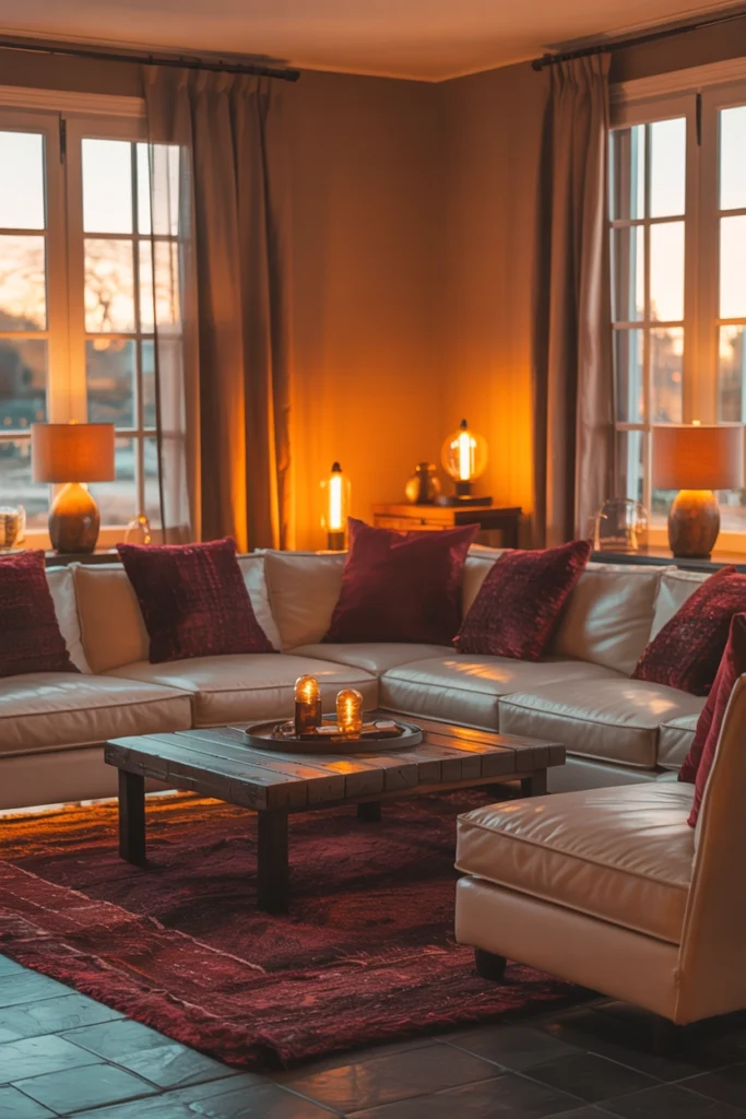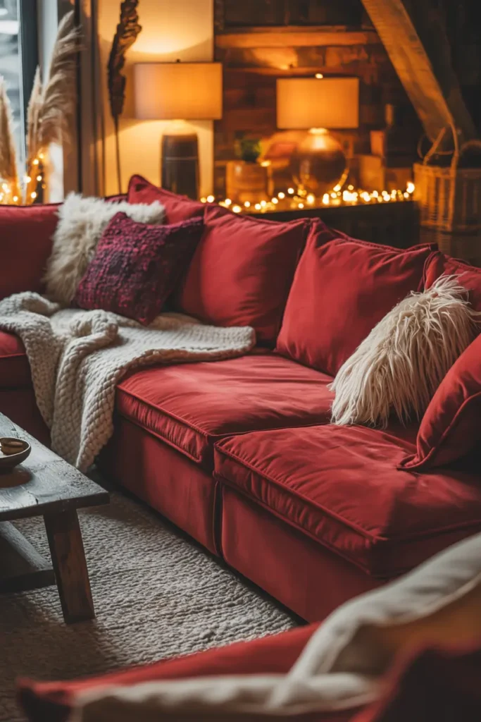 Choosing softer shades like rust, burgundy, or muted red can make a big difference. These tones feel more natural and blend beautifully with cozy textures.