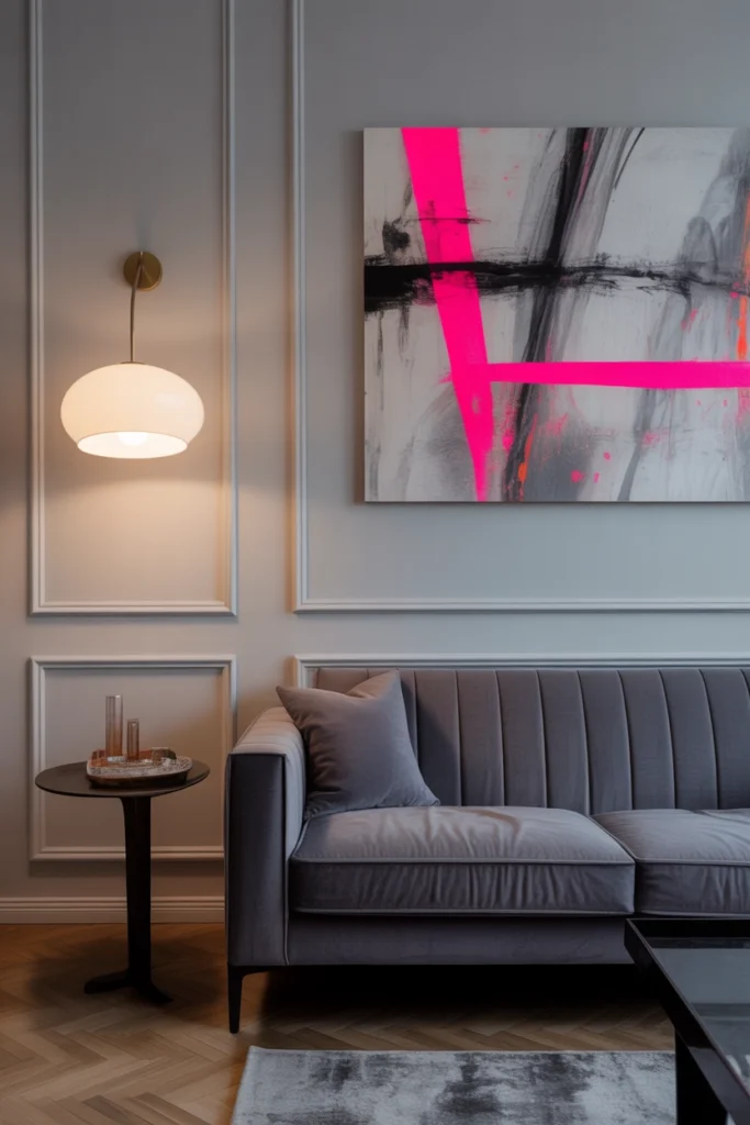 Artwork is one of the easiest ways to introduce color without committing to large decor changes. A piece that includes hot pink tones can act as a focal point while still blending into the overall design.
