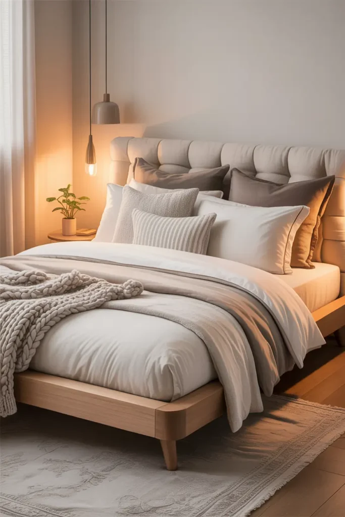 Stick to similar color tones for a modern feel. This small change instantly makes your bedroom feel cozy, stylish, and well-designed.