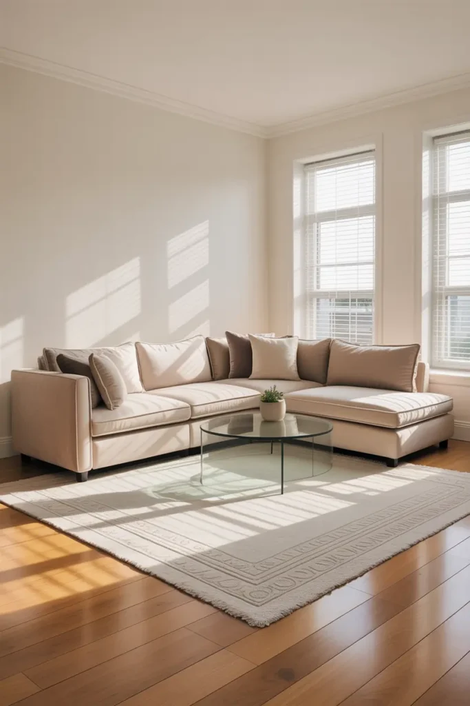 You can add personality with cushions, rugs, or wall art. This keeps the room stylish while still looking clean and balanced. Neutral colors are timeless and easy to update.